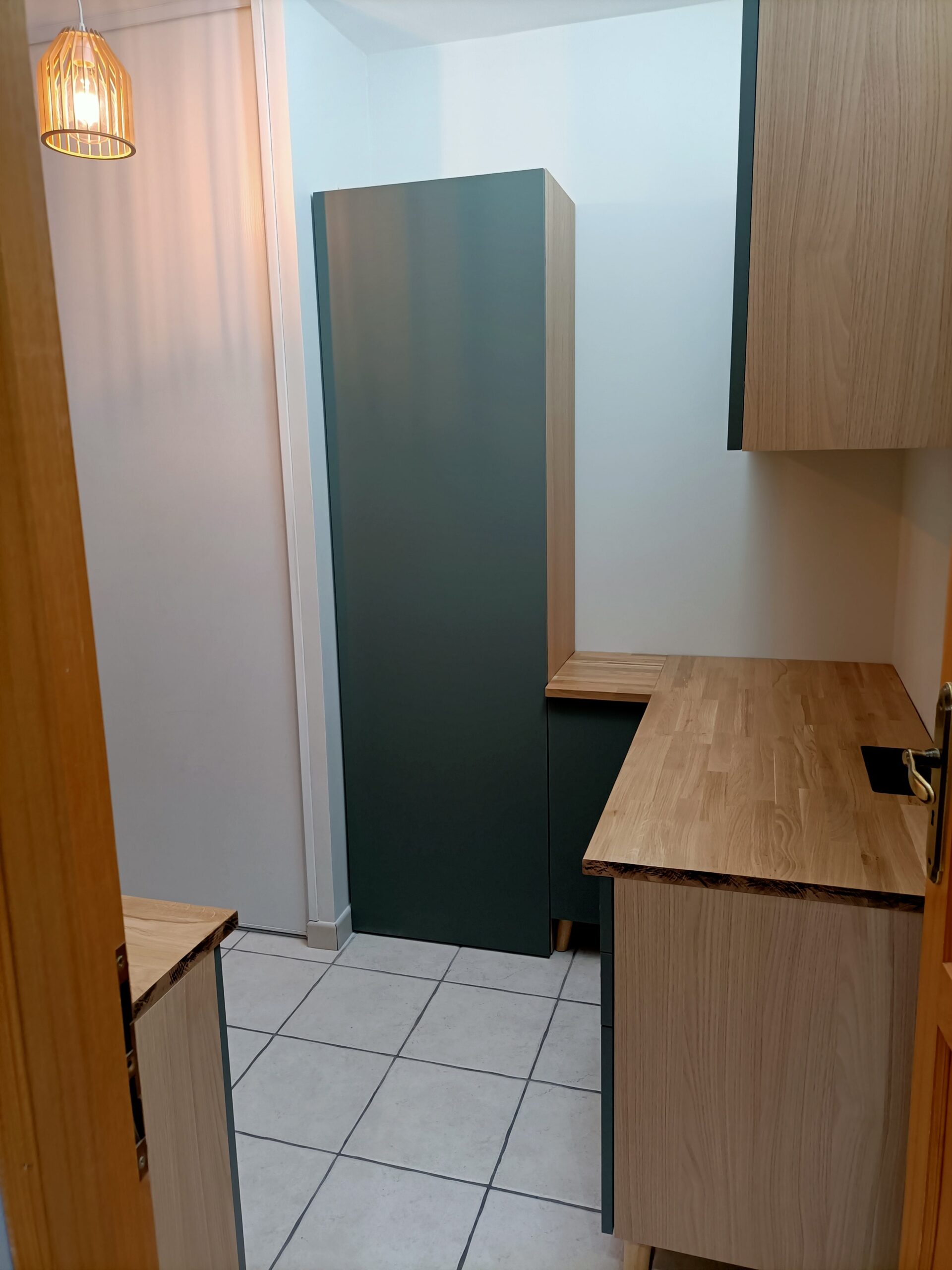Mise en peinture du couloir et pose de tapisserie + Création Dressing avec éclairage et pose d’un parquet PVC